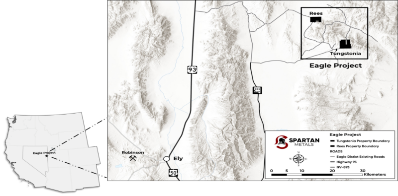Vancouver, Canada, October 16, 2025 TheNewswire – Spartan Metals Corp. (‘ Spartan ‘ or the ‘ Company ‘) (TSX-V: W) is pleased to announce, it has initiated an exploration program (‘ Program ‘) at its Eagle Tungsten-Silver-Rubidium Project in Nevada (Figure 1). The focus of the Program will be characterizing the tailings at the historic Tungstonia millsite and completing extensive surface exploration at the Tungstonia and Rees claim blocks.
