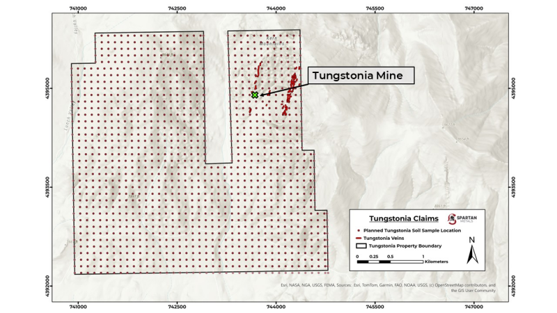 Figure 2 Planned soil sampling locations at the Tungstonia Claims.