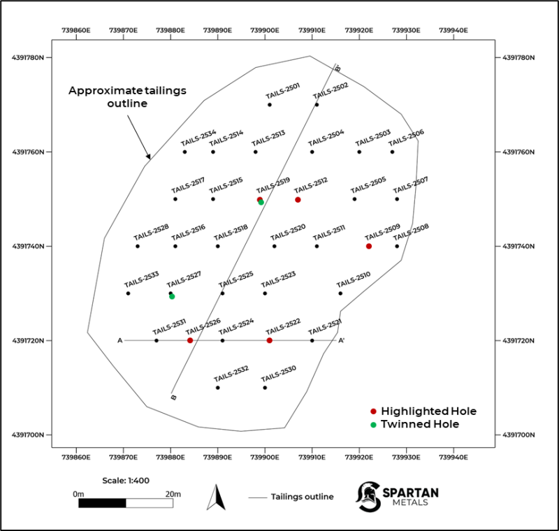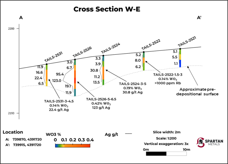 Vancouver, Canada, December 18, 2025 TheNewswire – Spartan Metals Corp. (‘Spartan’ or the ‘Company’) (TSX-V: W | OTCQB: SPRMF | FSE: J03) is pleased to announce assay results from the drilling program at the Tungstonia Tailings deposit, which is part of the company’s 100% owned Eagle Tungsten-Silver-Rubidium Project (‘Eagle’ or ‘Project’) in eastern Nevada. The program consisted of 34 ~6.4-centimeter (2.5 inch) holes at approximate 12 meter (m) spacing totaling ~67 (m) comprising 133 samples with an average depth of near 2 m aligned with pre-drilling estimates of the tailings thickness.