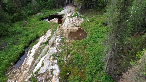 Figure 1 showing the stripped area at Roy which returned 18.8g/t Au and will be the focus of the drilling.
